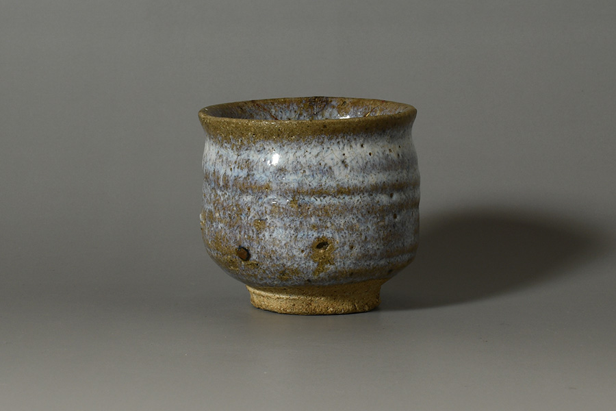 藁灰釉による白濁した釉調がやわらかく器肌を包み込み、濃淡の移ろいが幽玄な景色を描き出しています。