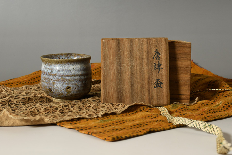 桃山時代から江戸時代初期に焼成された斑唐津の筒盃です。