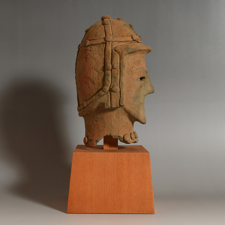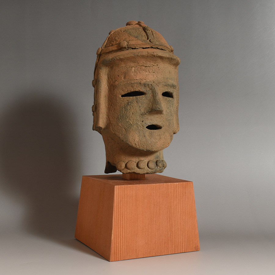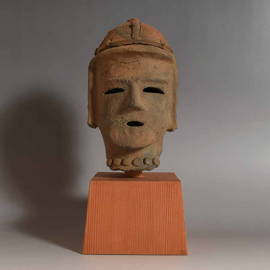 稚拙さを帯びながらも素朴な美しさをたたえ、精悍な顔立ちの中にどこか遠くを見つめるような眼差しが印象的です。