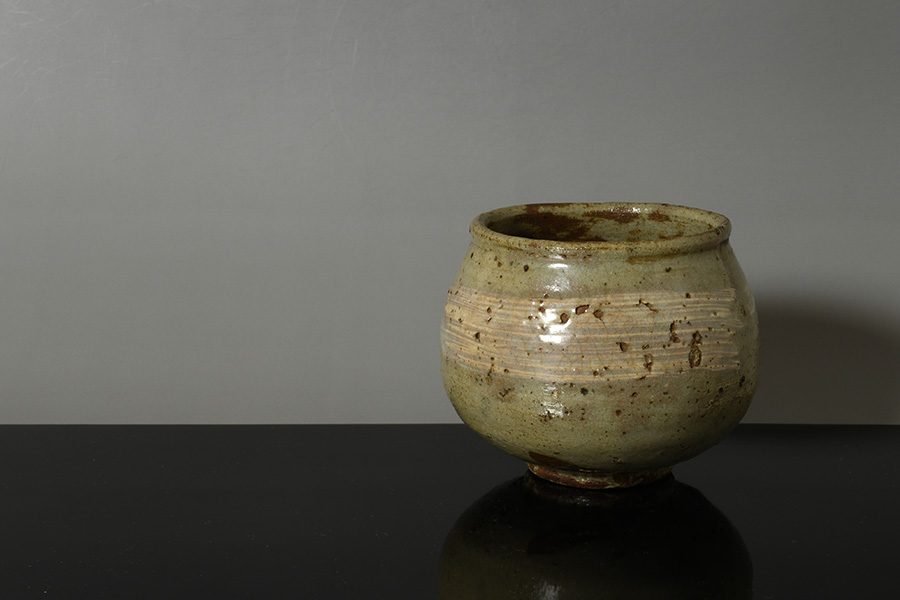 小振りながら締まりのある高台は器を力強く支え、高台周りに現れた釉切れの景色も豪快で、見どころとなっています。