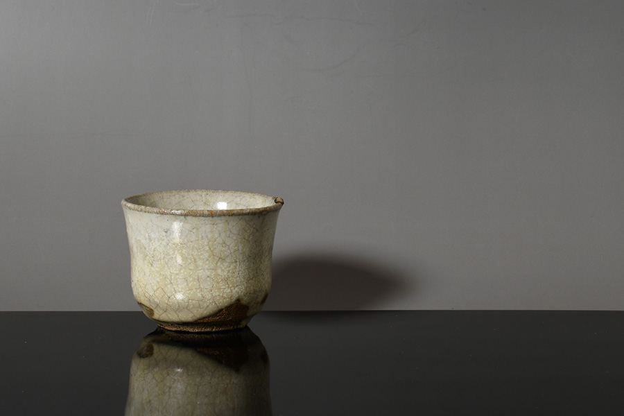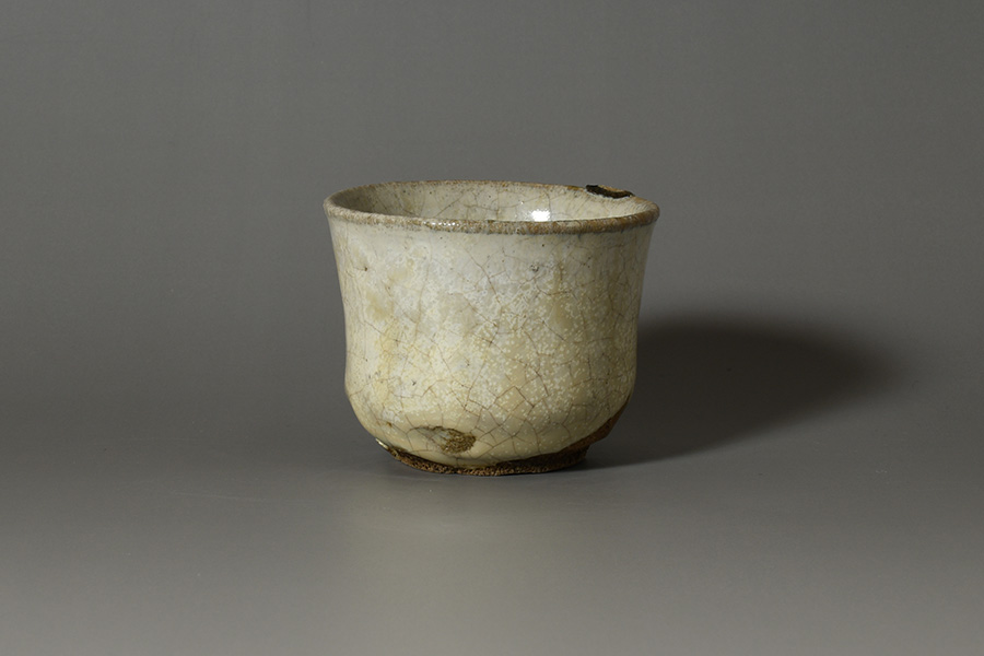 志野とも粉引とも異なる、唐津特有の白の景色を示す酒器は現存数が少なく、白き唐津の中でも、焼成の偶然がここまで豊かに現れた酒盃は稀少です。
