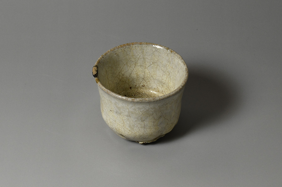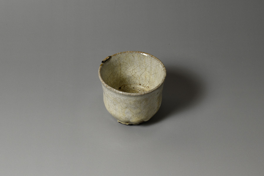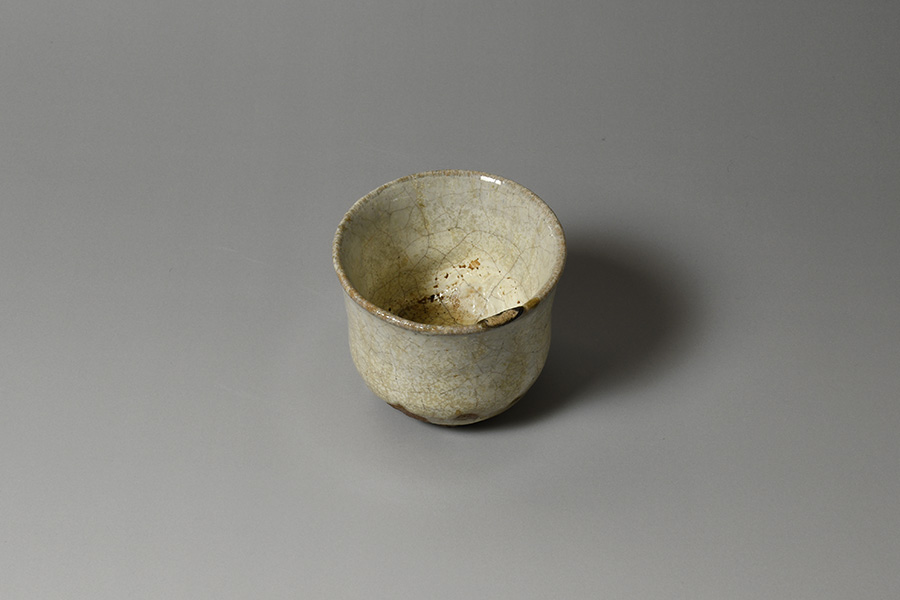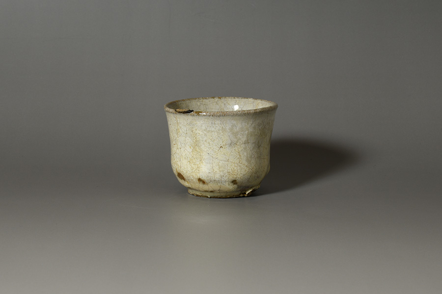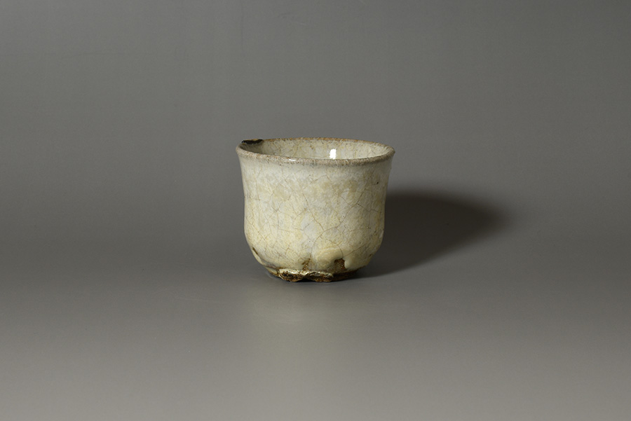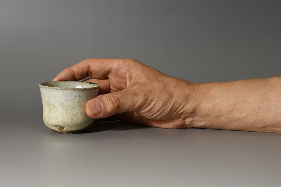 白の静けさと焼成の力強さが同居する姿は、酒盃としての実用のみならず、掌の中で桃山の気配を味わう小さな古陶として愉しんで頂けます。