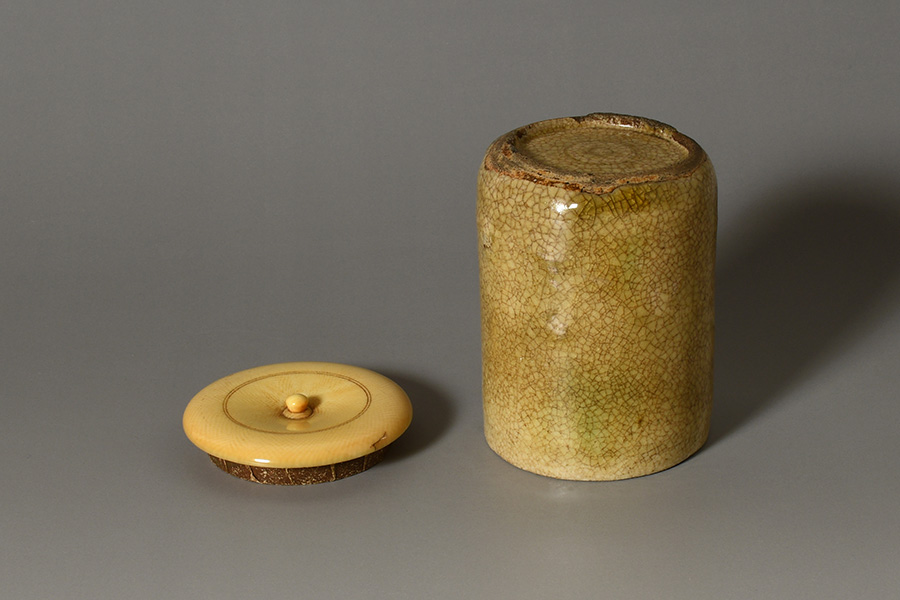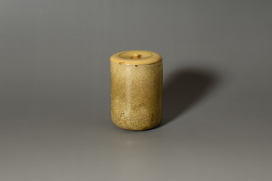 桃山時代から江戸時代初期に美濃窯で焼かれた灰釉の筒茶入です。