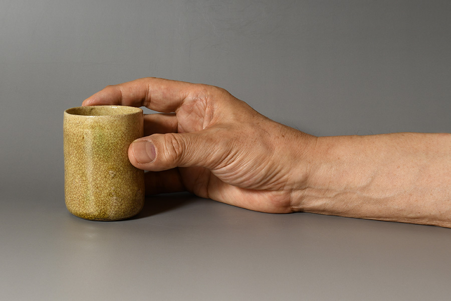 高さ約75ミリという小振りで収まりの良い寸法は手取りも良く、茶入として扱いやすい大きさです。また、筒盃としても手に吸い付くような絶妙なサイズ感ですので、茶入という格式を持つ茶道具を、酒器(筒盃)として愛でるという「見立ての美学」を楽しんではいかがでしょうか。