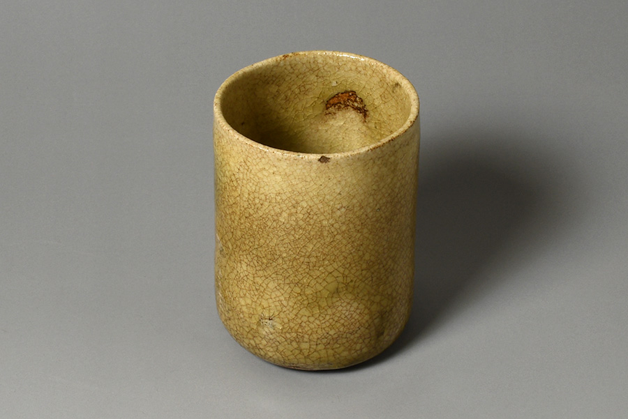 特に器全体を覆う伝世による貫入の景色の美しさは抜群で、茶人たちにより伝え、育てられた器ならではの奥行きを感じさせます。黄味を帯びた釉薬の柔らかな色彩とともに、春の景色を思わせる趣があります。お酒を含めば、春の香りを味わうような気分に浸れます。