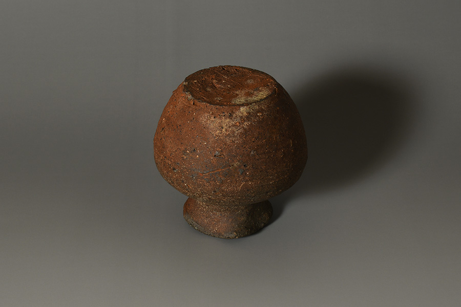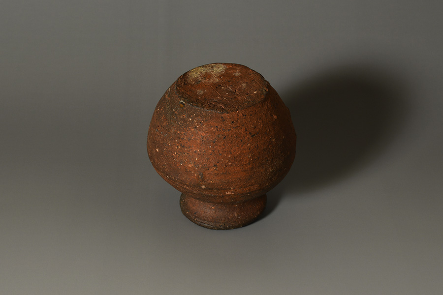 焼成によって生まれた胡麻・焦げの景色が肩口にかけて美しく現れ、土の豊かな表情と生命力とともに桃山古備前特有の野趣を色濃く伝えています。底部には焼成時に由来する痕跡が見られ、古作ならではの景色として時代の重みを感じさせます。肌は長年の伝世によって、しっとりと落ち着いた質感を纏っています。